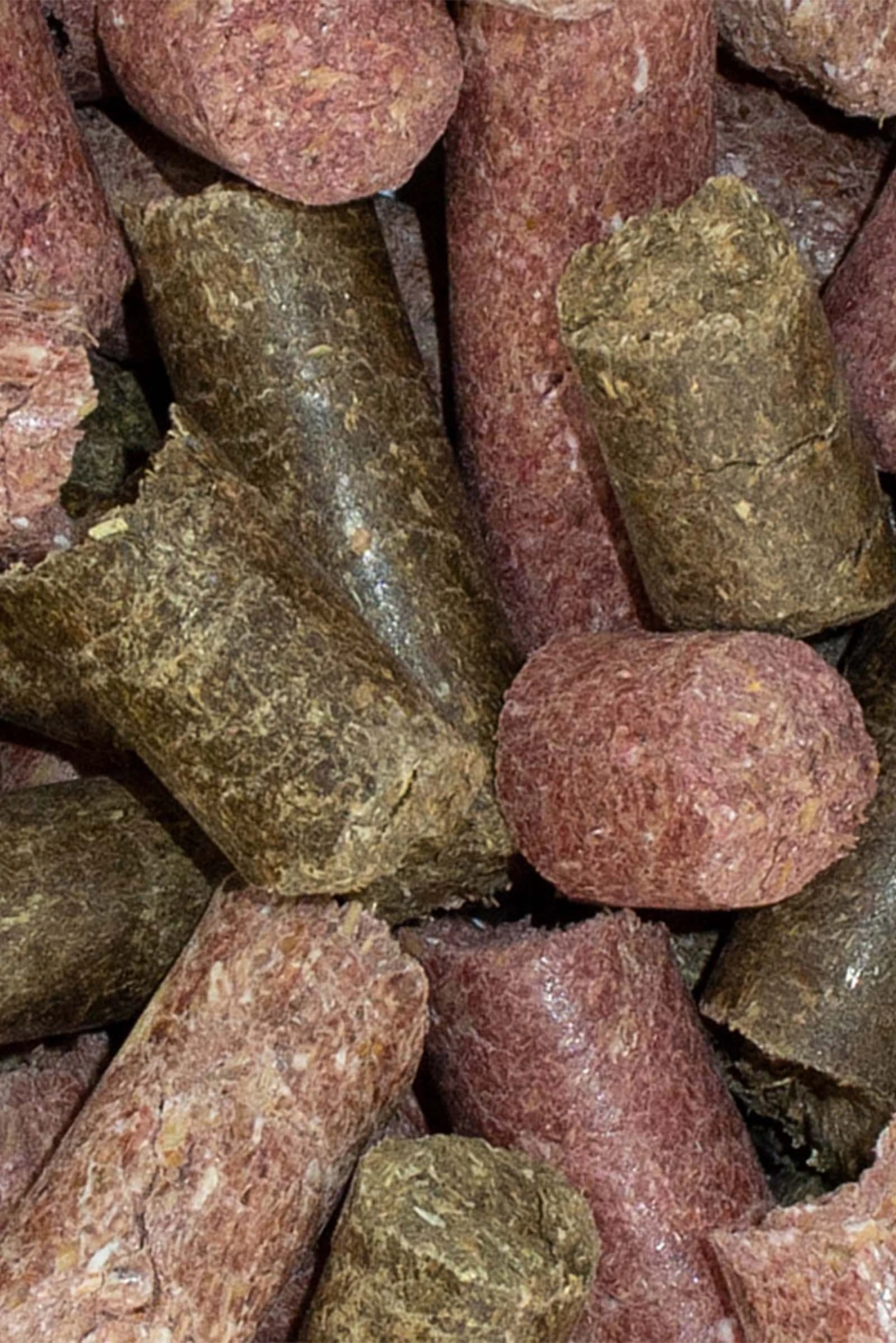 Composition: Wheat semolina bran, oat husk bran, calcium carbonate, barley, alfalfa, sugar cane molasses, maize, 0.33 % mixed herbs, 1 % carrot pomace, beetroot powder, 0.1 % raspberry pomace, 0.1 % dried carrots.