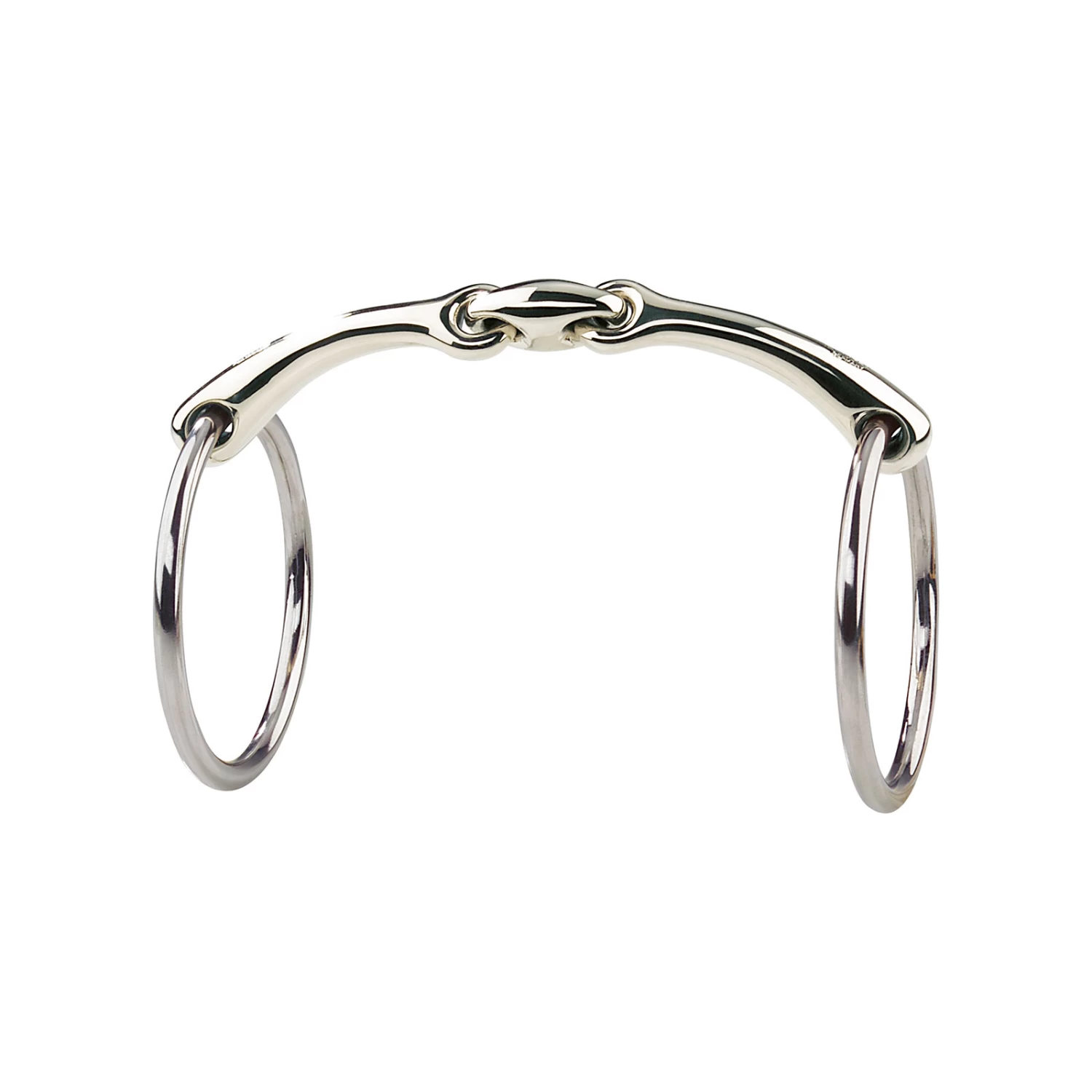 Material: Sensogan with stainless steel sides.Bit thickness: 14mm.Ring diameter: 55mm.Mouthpiece: Double jointed.