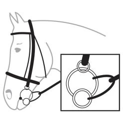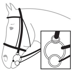 This bit is also extremely versatile as the 3-Ring bits due to the different rein options. It is a good choice for sensitive horses as it is a little bit softer than model 40607, leading to a higher level of acceptance. The lever action has a slight delay due to the lateral offset position of the upper ring. Cross-Country riders sometimes prefer to add a curb strap to get more direct action. The pressure on the poll is limited that way.