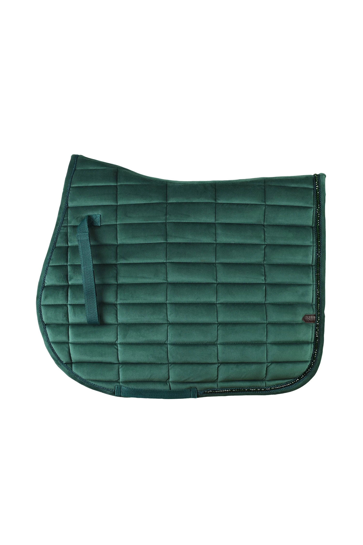 Noble and high-quality saddle pad made of velvet material and matching glitter band. The saddle pad also has a nice quilting. A highlight under every saddle.
