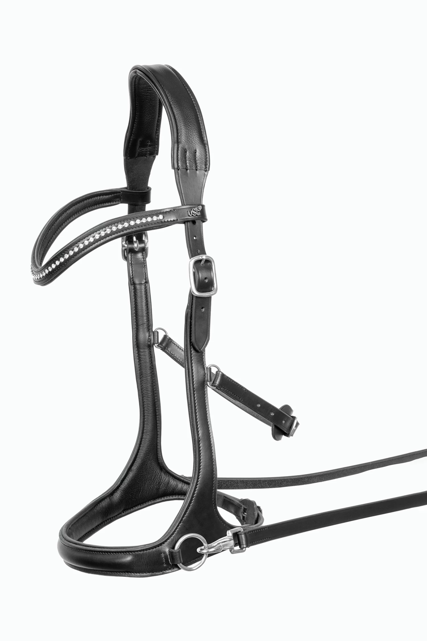 Bitless bridle, leather lined, web reins, curved browband with glitter stones, the soft alternative to riding with bits.