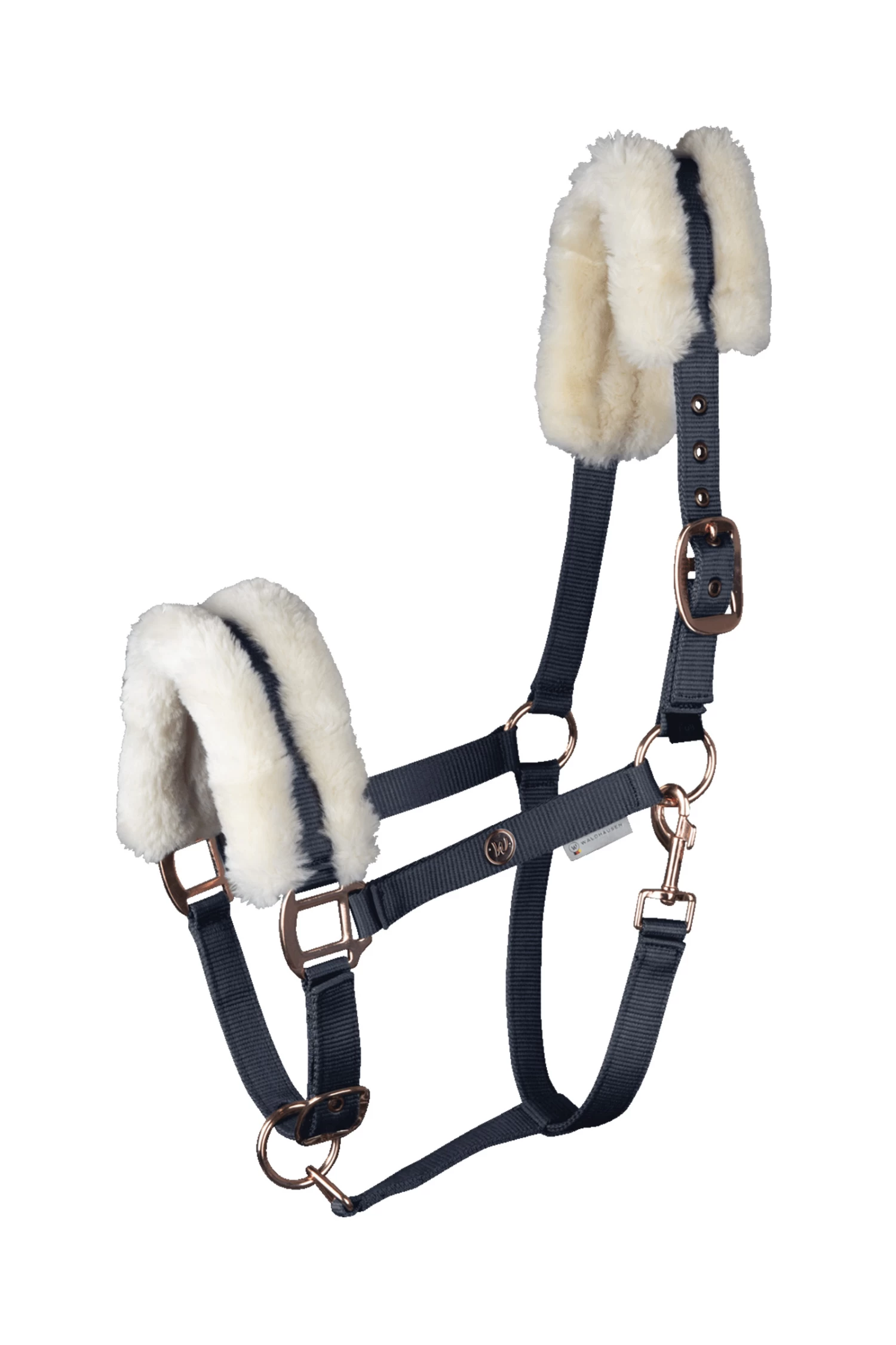 Elegant, quality halter with rose gold or golden fittings and a small metal plate. The headpiece as well as noseband are padded with soft synthetic fur. Matches our Modern Rosé collection