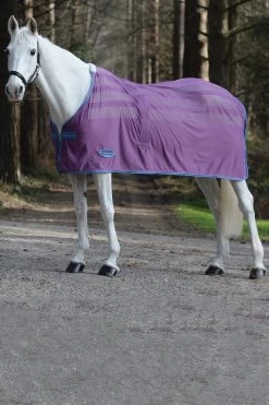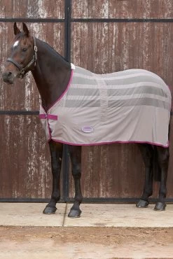 This lightweight cooler is ideal for traveling or cooling after exercise. It has mesh panels that are breathable and wick away moisture quickly. Features include surcingle chest front closure, hidden adjustable belly surcingle, a fleece wither pad and tail cord.